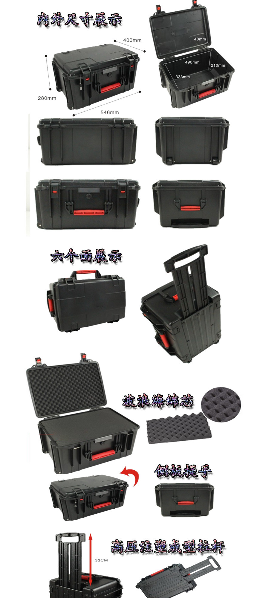 簡(jiǎn)要說(shuō)明:廣泛用于傳媒、公安、消防、軍隊(duì)、航空、戶外攝影、野外考察、科學(xué)探測(cè)等眾多領(lǐng)域的高端儀器、儀表。具有高強(qiáng)度、高抗壓沖擊、防潮、絕對(duì)密封、防塵、防水等特點(diǎn)。產(chǎn)品材質(zhì):ABS原料,箱體采用高抗沖擊的高分子聚合材料一體注塑成型,密封采用扁型彈性發(fā)泡密封橡膠條,確保防水氣密,所有較軸均采用不銹鋼材質(zhì)。